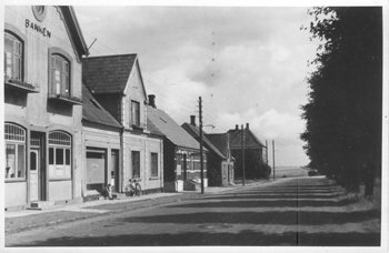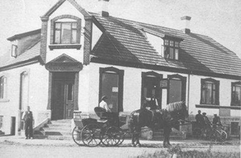En af de tidligste bygninger i byen efter mejeriets opståen. Den blev indrettet med forretningslokaler og beboelse. På billedet holder et køretøj. Den unge mand hedder Marius Laursen. Han blev ejer af en gård på Holmstol Mark, som han senere overlod til son svigersøn, Egon Bach Christensen.