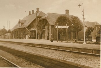Denne to-etagersbygning er bygget i 1912 - 4 år efter at banen blev færdiganlagt. Den blev opført af murermester Jens Sørensen Nedergård, som ejede et gårdbrug i Allingskovby (nu ejet af Knud Bonde).